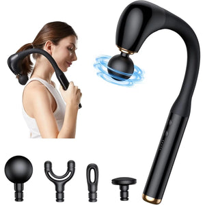 Aparat de Masaj Percutant în Formă de L – 5 Viteze, Capete Interschimbabile, USB-C, 10W