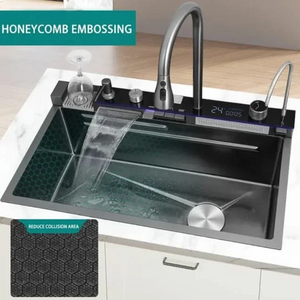 Chiuvetă Multifuncțională Premium cu Afișaj Digital al Temperaturii – Design Modern în Negru Grafit