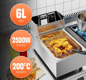 Friteuză Electrică Profesională 6L, 2500W - Inox Calitate Restaurant