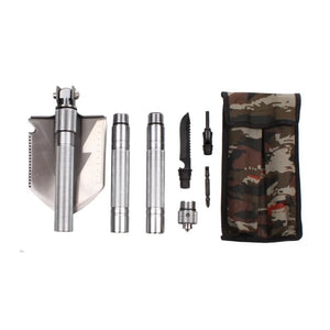 Lopata oferă mai multe funcții într-un singur instrument, având capul schimbabil, care poate fi utilizat ca fierăstrău, deschizător de sticle, topor, sau chiar ca metru cu unități de măsură de până la zece centimetri. Mânerul este reglabil la 180 de grade, ceea ce permite transformarea acesteia într-o sapă. Designul inovativ al mânerului permite demontarea ușoară, iar în interiorul acestuia veți găsi un cutit tactic, un fluier și un silex pentru aprinderea focului. Capătul mânerului include un vârf metalic util pentru spargerea geamurilor în caz de urgență.