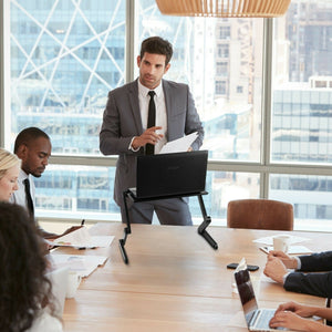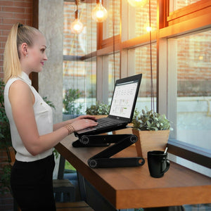 Reglabilă la înălțimea dorită: poziționează laptopul perfect pentru o postură sănătoasă.