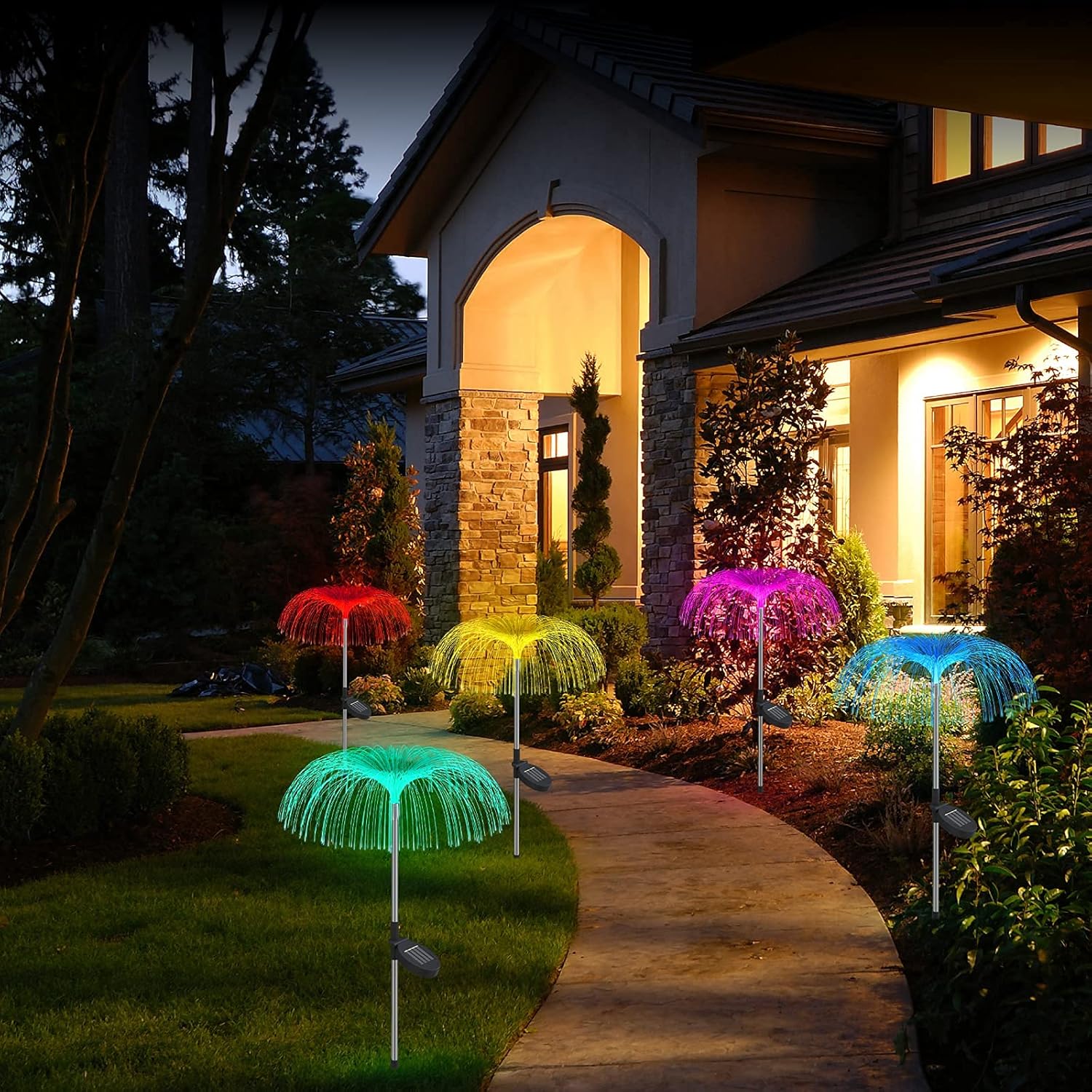 Lampa solară tip palmier cu fibră optică LED RGB adaugă culoare și lumină în grădină, curte sau terasă. Cu un design din plastic și oțel inoxidabil, este rezistentă la apă (IP44) și oferă iluminat decorativ cu efecte RGB. Se încarcă prin panoul solar de 150 mAh și poate ilumina până la 6-8 ore pe noapte, în funcție de expunerea la soare.