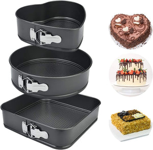 Set 3 forme pentru prăjituri - rotundă, pătrată și inimă