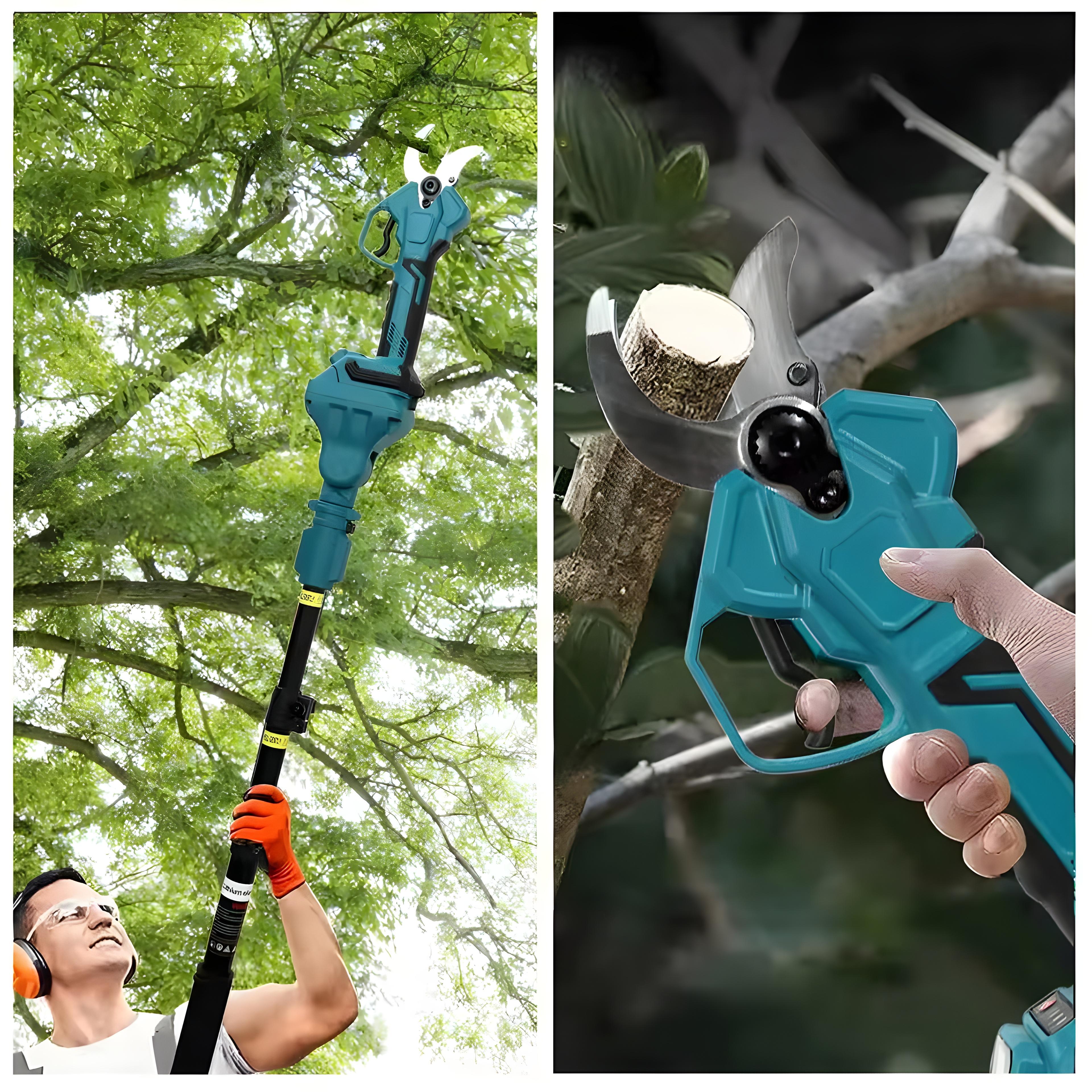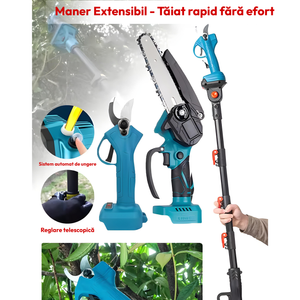 - Tija extensibilă reglabilă: Permite tăierea ramurilor la înălțime, fără necesitatea unei scări, pentru mai multă siguranță și confort în timpul lucrului.