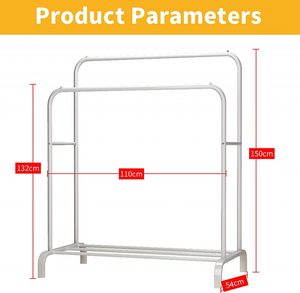 Acest suport dublu pentru umerașe combină designul minimalist cu funcționalitatea avansată, oferind un spațiu generos pentru haine, pantofi și accesorii. Cu 8 cârlige suplimentare și rafturi integrate, este soluția perfectă pentru a menține ordinea în dormitor, hol sau dressing.